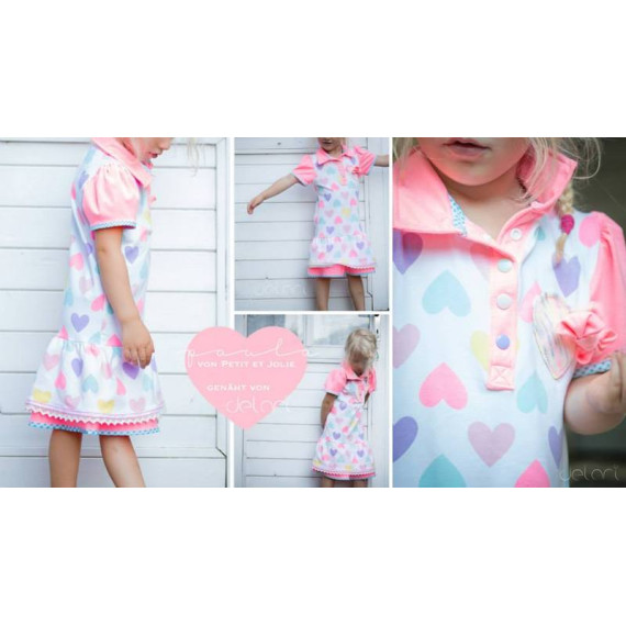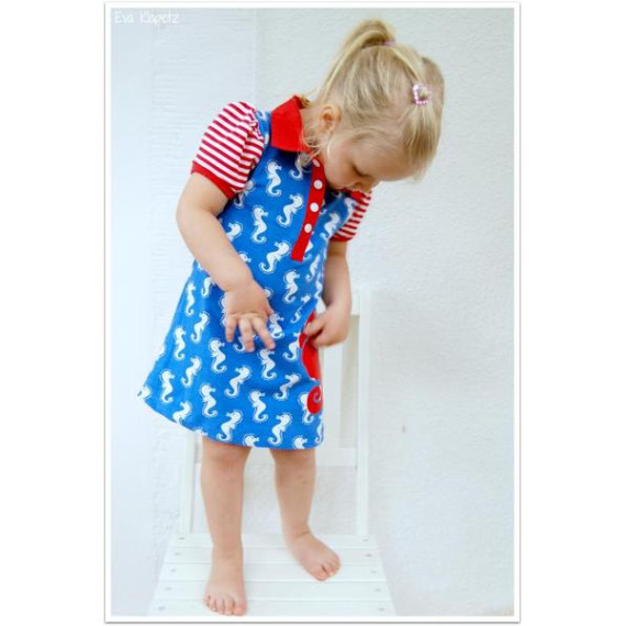 Das Ebook beinhaltet sowohl eine tailliert geschnittene Poloshirt-Variante, als auch zwei Kleidchenoptionen. Das sportliche A-linen-förmige Kleid läd zum Toben ein und auch das Rüschenkleid lässt genug Bewegungsfreiraum für kleine Weltentdeckerinnen.