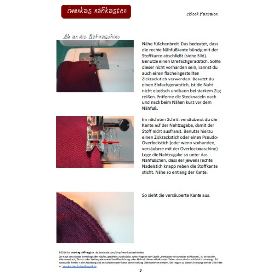 Dieses eBook enthält ein professionell erstelltes Schnittmuster in den Größen 56 bis 98 und eine ausführlich bebilderte Schritt-für-Schritt-Nähanleitung zur Fertigung der Babyhose „Pantaloni“ in digitaler Form.