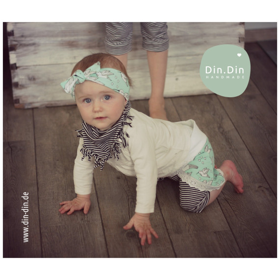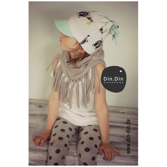 Das Ebook umfasst 14 farbige Seiten (DIN A4) mit einer ausführlichen Foto-Nähanleitung. Das Halstuch gibt es für kleine Kids in drei Größen sowie für die größeren als Loop/Schal.