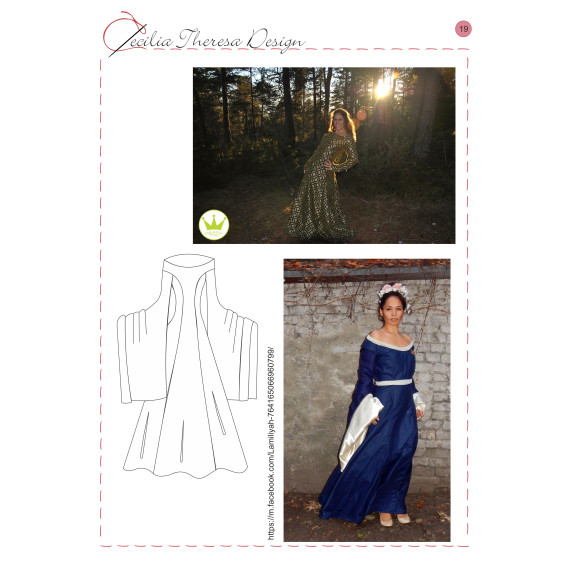 „Pavane“ ist ein opulentes Fantasykleid im mittelalterlichen Stil mit einem dramatischen Kragen und verschwenderisch langen, offenen Trompetenärmeln, geschlossen wird es mit einer Schnürung im Rücken. Dank seiner großen Saumweite von über vier Metern kann es auch über einem Reifrock getragen werden. Ob für mittelalterliche Märkte und Events, Live Rollenspiel oder auch als Hochzeitskleid, diese Robe wird nirgends übersehen werden und immer im Rampenlicht stehen! Das eBook enthält neben dem übersichtlich gestalteten Schnittmuster in den Größen 40-50 eine ausführliche Anleitung mit vielen Fotos für ein rundum gelungenes Nähergebnis.