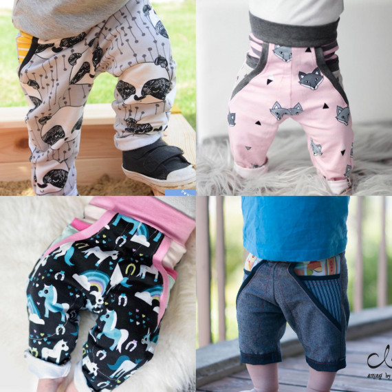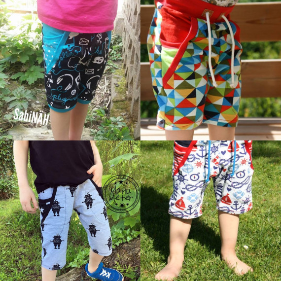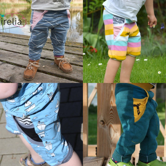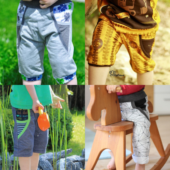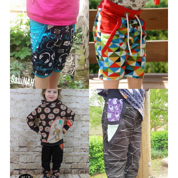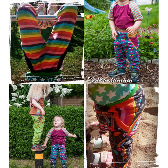 Mit diesem Ebook kannst du deinem Baby oder Kind eine gemütliche, körpernahe Hose nähen. Sie ist zum Nähen mit dehnbaren Stoffen gedacht. Je nach Körperbau des Kindes kannst du zwischen verschiedenen Povarianten wählen: die schmale, oder die etwas weitere für kräftig gebaute Kinder, oder jene, die eine Windel tragen. Das besondere an der Hose sind zudem die Taschen: sie werden mit einer prägnanten Dreiteilung genäht. Hierdurch kannst du toll Stoffe kombinieren, oder dich im Colour-Blocking probieren. Die Hose kann am Saum gekrempelt, oder mit einem Bündchen versehen werden. Kürzt du die Hose unterhalb der Taschen, erhälst du eine super Sommerhose!