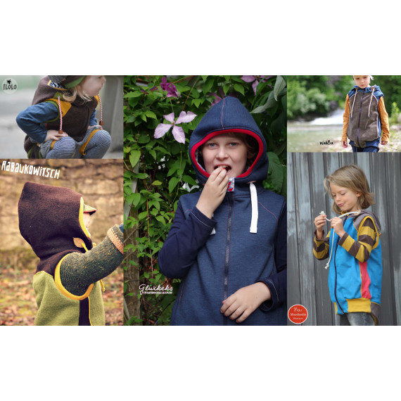 Ob für coole große Jungs- ganz der Papa- schlicht und lässig in der Standardversion, ohne Schnickschnack genäht, oder für Mama's Lieblingswaldwichtel mit Zipfelkapuze und extra lang für einen trockenen Po im Sandkasten (äh, auf dem Waldboden).