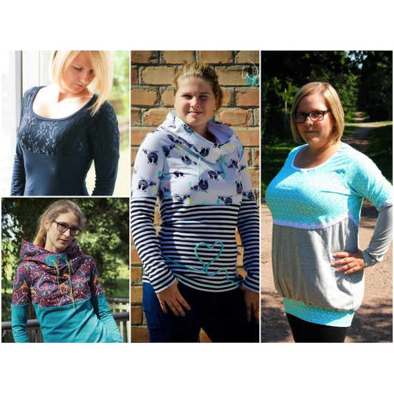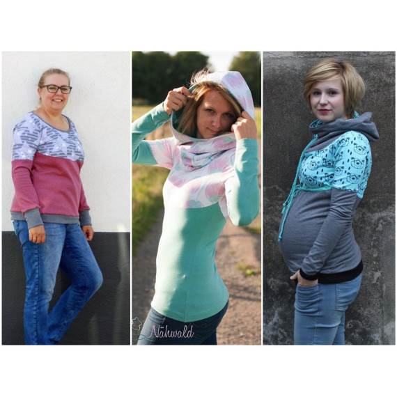 Missy ist ein Hoodie mit 3 Varianten - inkl. der Variante 2.0. Ihr könnt zwischen Kapuze und Kragen wählen oder nur ein Bündchen Abschluss machen. Des weiteren, zwischen einer Figur Betonten oder Legeren Version. Durch die Stoffteilung unterhalb der Brust wird dieser Hoodie zu einem echten Hingucker.