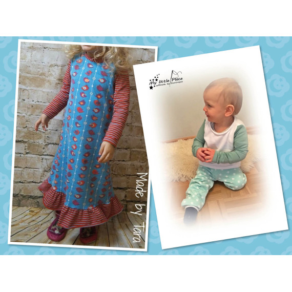 Dieses klecksMACS E-Book beinhaltet die bebilderte Nähanleitung sowie das Schnittmuster für das Oberteil und die Hose in den Größen: