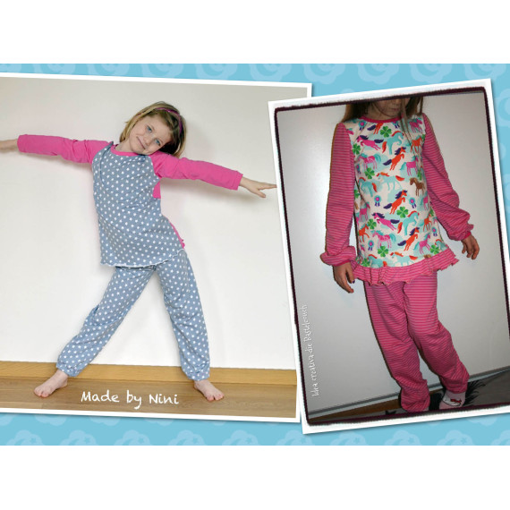 Die Pyjama-Hose ist für beide Geschlechter gleich und auch für die kleinen Prinzessinnen und Prinzen mit Windeln passend. Zusätzlich gibt es im E-Book einige Tipps und Tricks zum Kräuseln und wie man aus dem Hosenschnitt verschiedene Varianten zaubern kann.