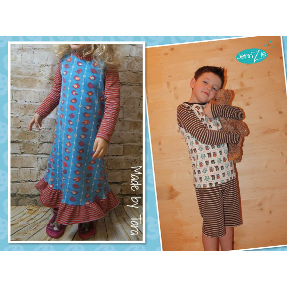 Das klecksMACS E-Book *Moonlight* beinhaltet die Nachtwäsche für Mädchen und Jungs. Das Oberteil der Mädchenversion ist tailliert geschnitten, der Saum leicht abgerundet und kann mit oder ohne Rüschen genäht werden. Neben dem klassischen Ärmelschnitt rundet ein zusätzlicher Schnitt für Puffärmel den Pyjama für kleine und große Prinzessinnen ab. Natürlich gibt es auch einen Schnitt für ein langes Nachthemd, das ebenfalls mit oder ohne Rüschen bzw. klassischen Ärmeln oder Puffärmeln genäht werden kann.