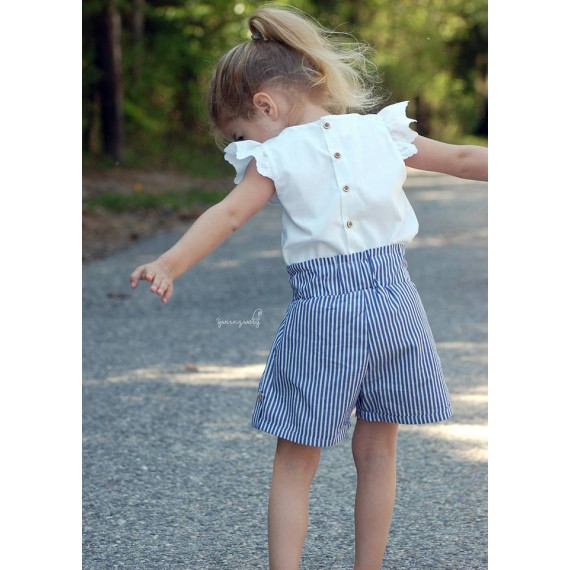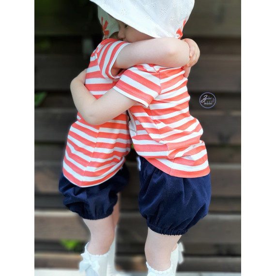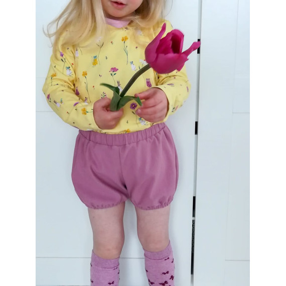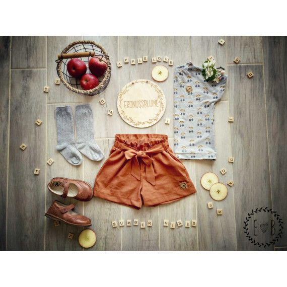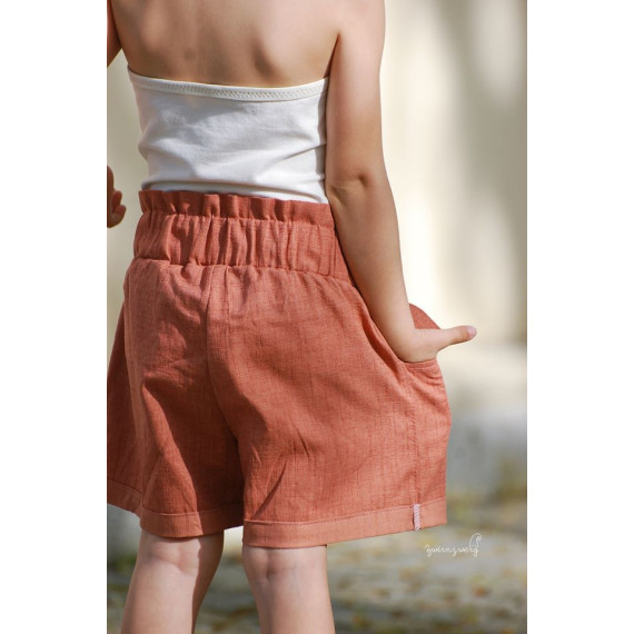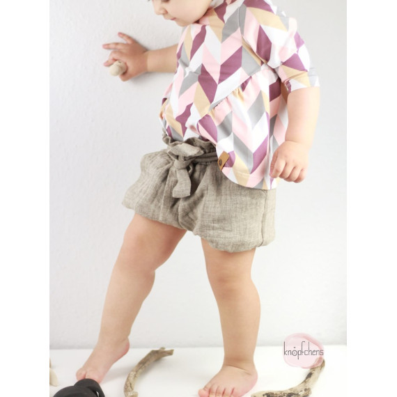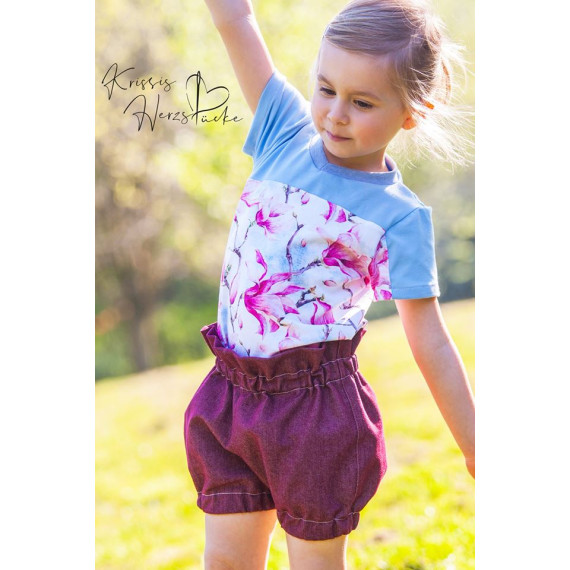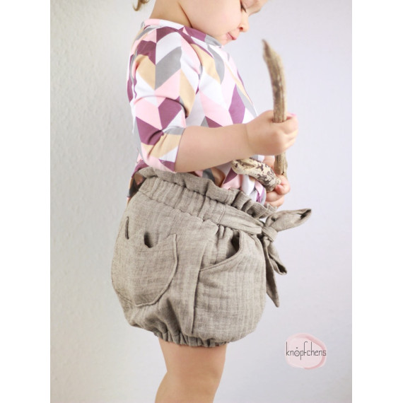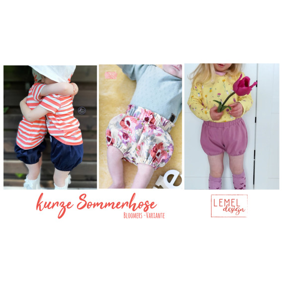 Ein Schnittmuster für eine kurze Sommerhose in verschiedenen Varianten für die Größen 50-164. Für die kleinen eine süße Bloomer für die Größen mit weit geschnittenem Bein. Konzipiert ist der Schnitt für Webware wie Chambray, Leinen, Baumwoll-Webware, Viskose-Webware, Popeline, Voilé, evt., kann aber auch aus Sweat un Jersey genäht werden, dann fällt es aber ggf. etwas anders.