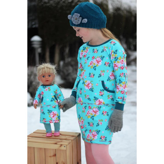 Den Schnitt habe ich in Gr. 74 bis 152 in meinem Echtgrößensystem für dich gradiert. Dabei passt z. B. Größe 74 ab einer Körpergröße von 74 cm bis 79 cm usw. Das Schnittmuster enthält weder Naht- noch Saumzugabe und ist auf dehnbare Stoffe wie Jersey oder weichen French Terry ausgelegt.