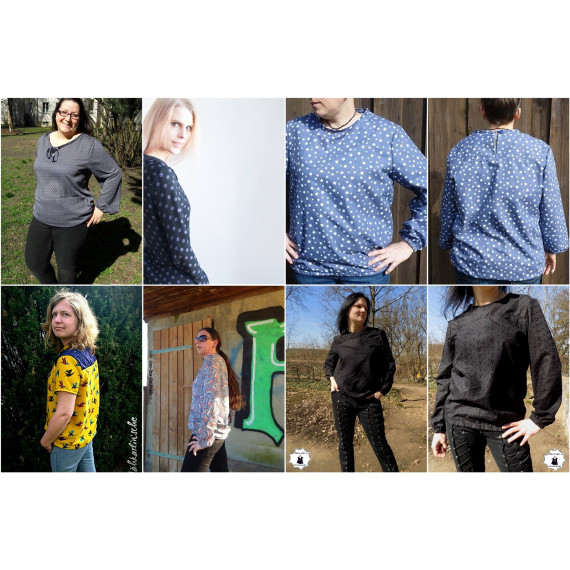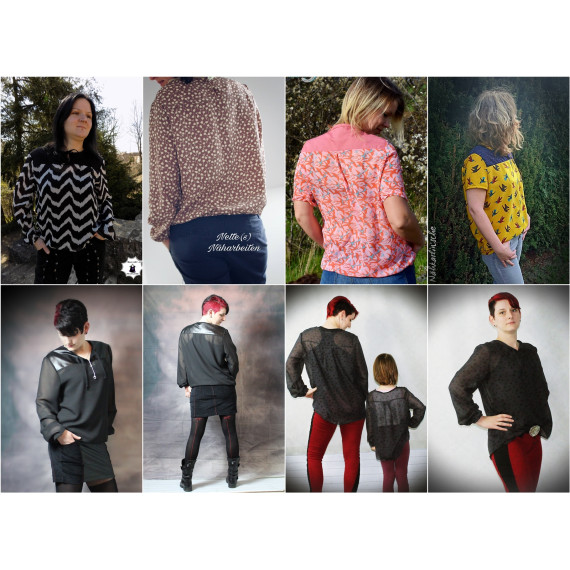Lizz ist eine süße Oversiz-Bluse für die wärmeren Tage. Sie kann sowohl aus Webwaren wie z.B. Chiffon, Georgette, Blusenstoffen genäht werden, als auch aus Babycord. Natürlich ist auch eine Jerseybluse möglich. Du kannst den Verschluß nach vorn oder hinten nehmen. Bei der Jerseyversion kannst du ihn sogar ganz weg lassen. Mit Lizz hast du einen Begleiter für´s ganze Jahr... ob lässig oder ganz chic... zum Rock oder zur Jeans... Außerdem kannst du auch zwischen kurzen, halblangen und langen Ärmeln wählen. So hast du zu jedem Anlaß das passende Teilchen.