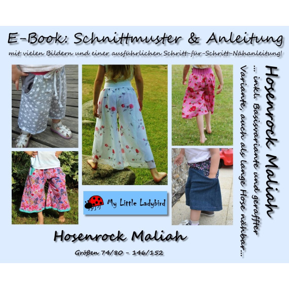 Dieser Schnitt darf zu privaten Zwecken und zur Fertigung von Unikaten/Kleinserien – auch zum Wiederverkauf (bis 15 Stück) unter der Angabe “Hosenrock Maliah by My Little Ladybird” – verwendet werden. Massenproduktion ist ausdrücklich untersagt, ebenso Weitergabe, Abdruck oder Veröffentlichung dieses E-Books oder von Teilen davon.
