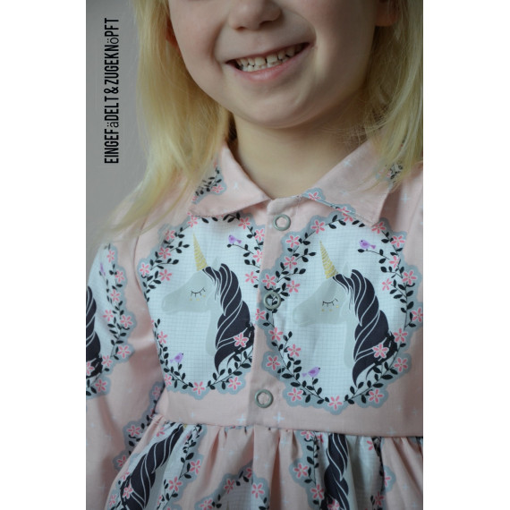 Der Ausschnitt kann mit Beleg oder mit einem Kragen genäht werden.