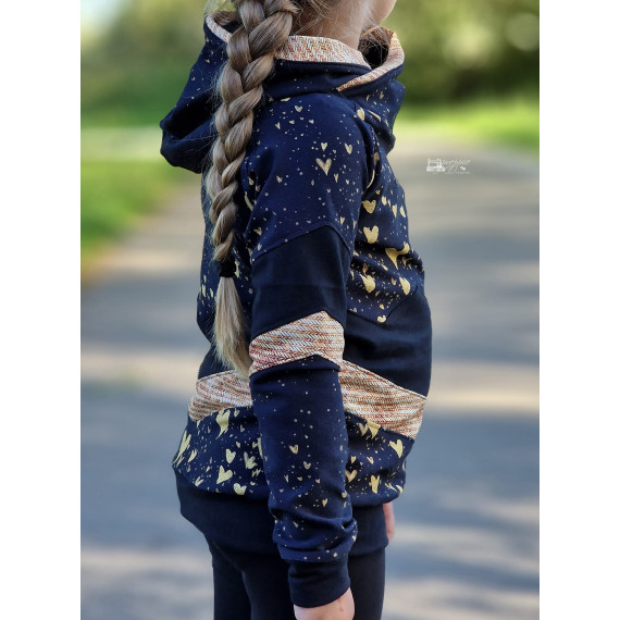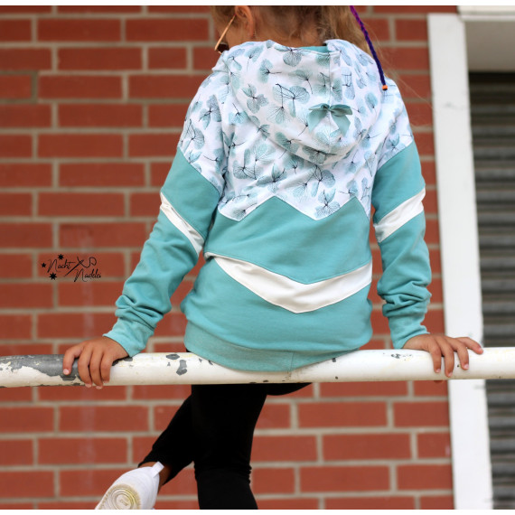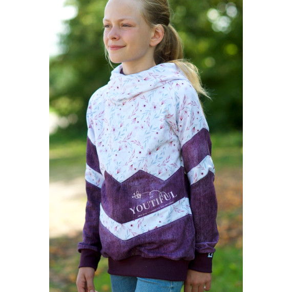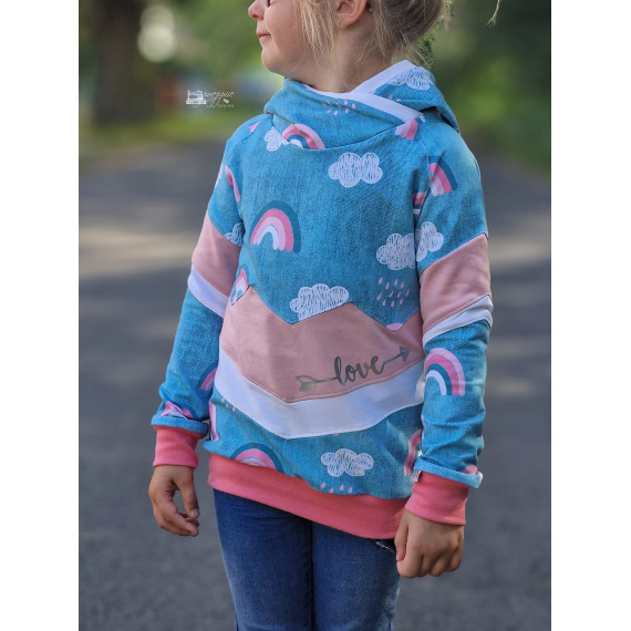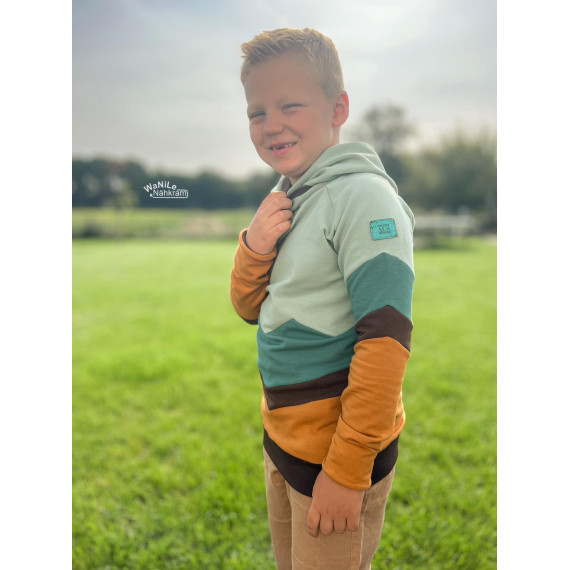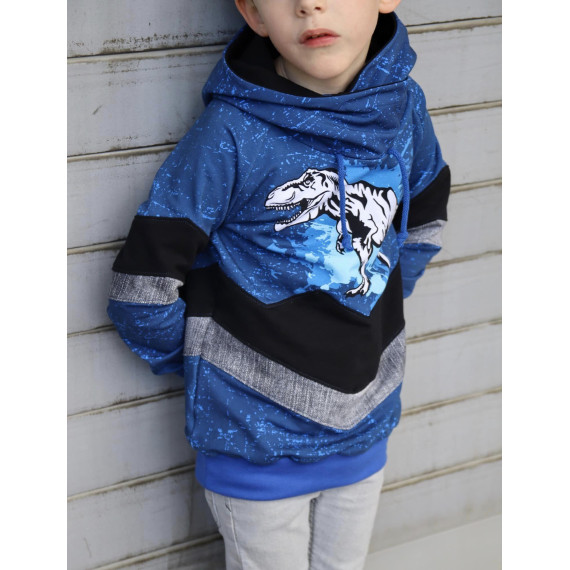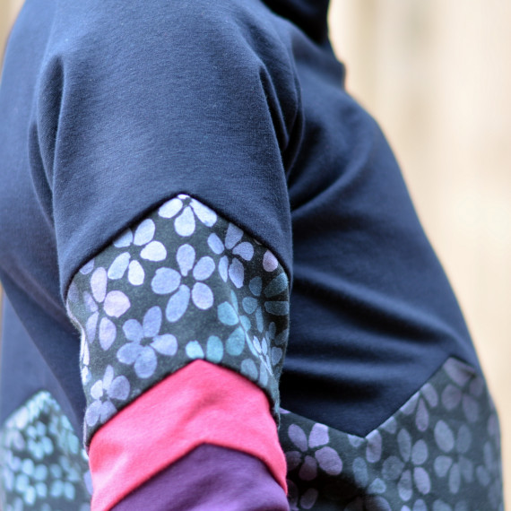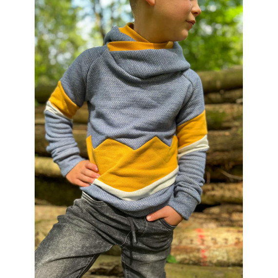 Mit Hoodie Croxx bist Du hierfür jedenfalls bestens gerüstet. Du kannst ihn sowohl mit, als auch ohne Teilungen nähen. Ideal geeignet auch zur Verwertung kleinster Reste ab 15 cm. Nur mit einer oder sogar ganz ohne Teilungen ist er für Panelstoffe prima nutzbar und Deiner Kreativität sind keine Grenzen gesetzt. Und sehen die Zacken der oberen Teilung nicht aus wie eine Krone? Ideal als Geburtstagshoodie, findest Du nicht auch?