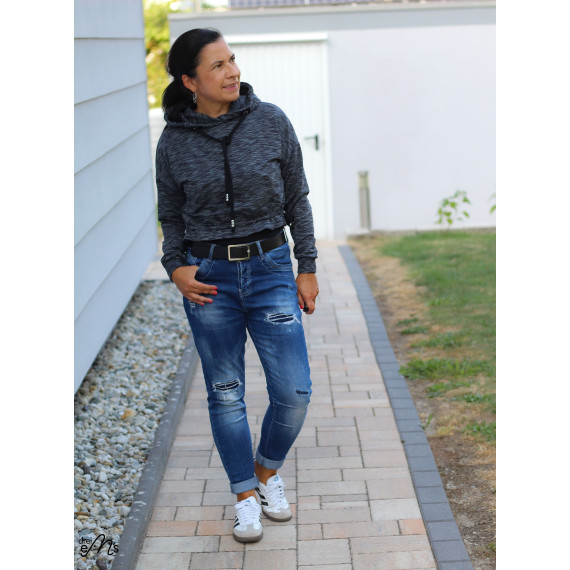 Setzte ein Statement mit diesem außergewöhnlichen Hoodie. Du kannst zwischen Kapuze oder normalen Rundhalsausschnitt wählen. Die Kapuze kannst du mit Kordel oder Bündchen nähen, beide Varianten sind natürlich im Schnittmuster enthalten.