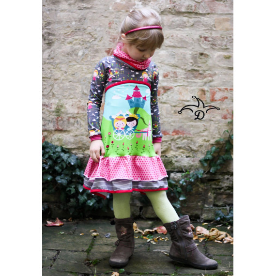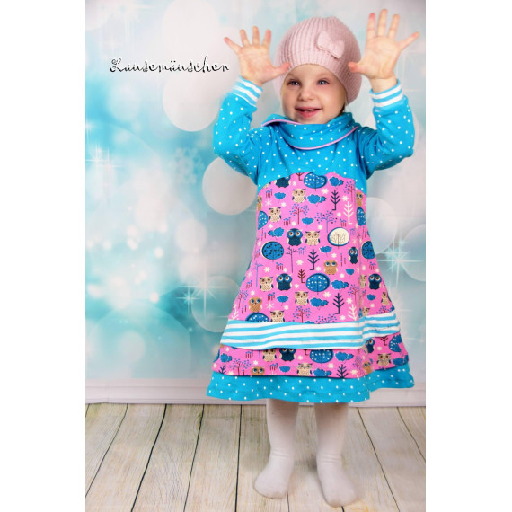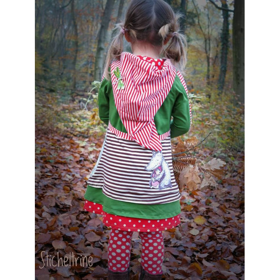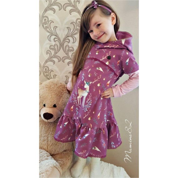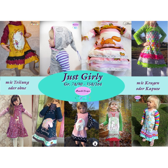 Just Girly, das vielfältige Kleid für jeden Anlass. Ob mit Rüschen oder Volant, als Tunika mit Teilung oder ohne, mit Wickel-Zipfelkapuze, normaler Schalkapuze, mit Wickelkragen oder Schalkragen, eurer Fantasie sind keine Grenzen gesetzt. Das Kleid kann in den Größen 74/80 - 158/164 genäht werden und macht jedes entstandene Werk zu einem besonderen Einzelstück.