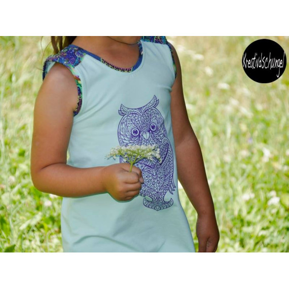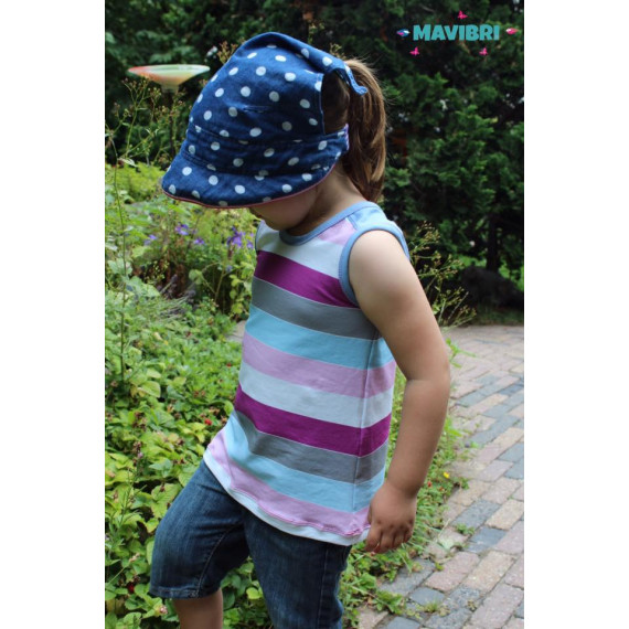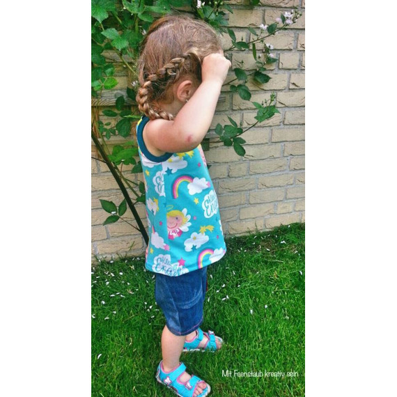 Das Nähpuls Sommertop girls gibt es in den Einzelgrößen 80 bis 128. Es ist für schmale bis normal gebaute Kinder konzipiert! Das Highlight ist das geteilte Schulterteil. Für Mädchen ist es ein ausgestelltes Top, etwas über den Po reichend. Das Schnittmuster ist auf Jersey ausgelegt. Der Armabschluss kann sowohl mit Streifenversäuberung, als auch mit Bündchen genäht werden.