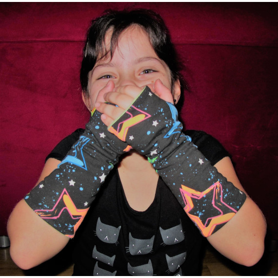 Lola ist eine Handstulpe zum Wenden mit Daumenloch. So bleiben die Finger frei, aber die Hände trotzdem warm. Lola gibt es in 2 Onesize-Größen. Einmal für Damen und einmal für Kinder, welche in der Länge variiert werden können.