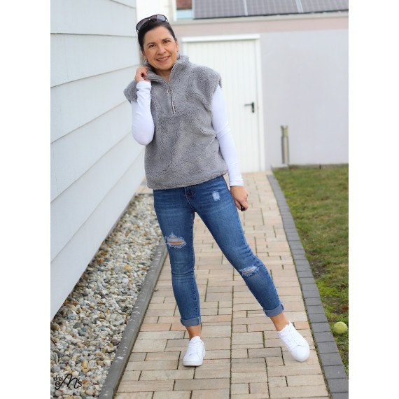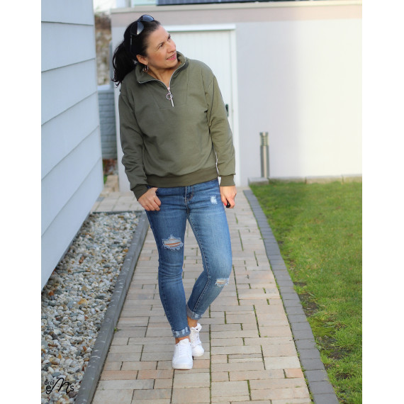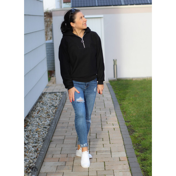 Wenn du etwas Angst vor dem Einsatz hast, gibt es auch die Möglichkeit den Troyer im Vorderteil zu teilen. So gelingt dir das einnähen des Reißverschlusses sicher super! Natürlich gibt es dafür auch ein Schnittteil und dies ist auch bebildert beschrieben.