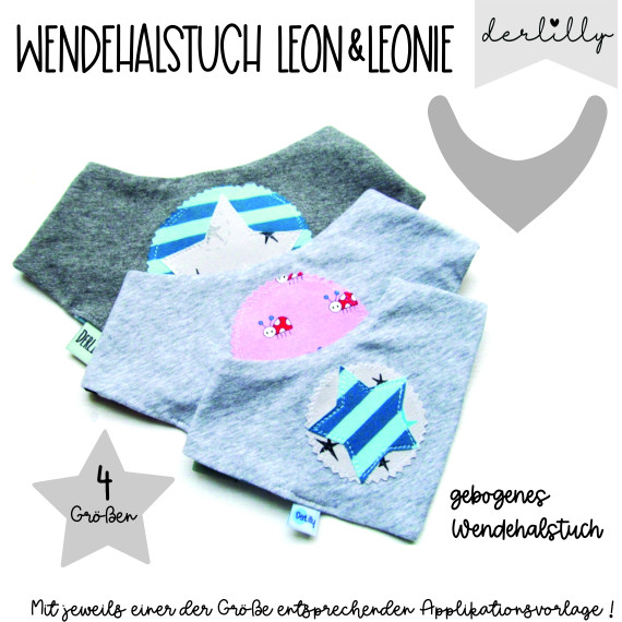 Der Schnitt eignet sich für fast alle Baumwollmaterialien, Baumwolljersey, Sweat, Frottee oder Fleece, aber auch aus Musselin als ein leichteres Modell für den Frühling oder Sommer. Das E-Book „Wendehalstuch Leon und Leonie“ ist ein einfaches Nähprojekt, und daher auch prima für Nähanfänger geeignet. Zudem kannst Du lernen Applikationen, anzufertigen, und somit das Halstuch mit einer eigenen Note aufzupeppen.