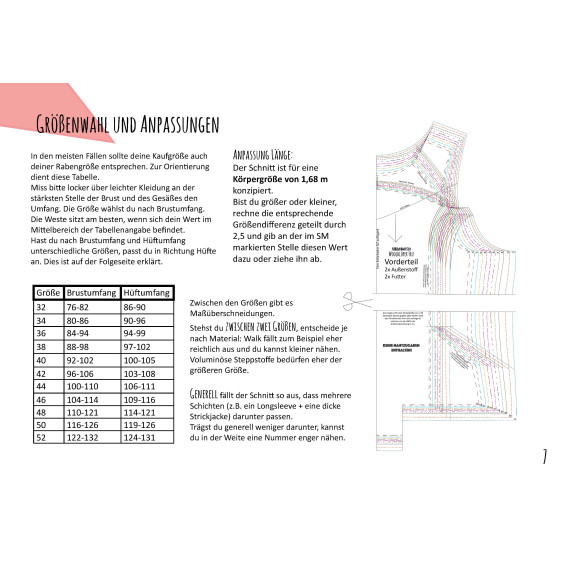 Die Anleitung ist Schritt für Schritt bebildert, enthält viele Grafiken und Anpassungshinweise, damit du bald deine perfekte Weste in der Hand hältst.