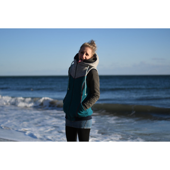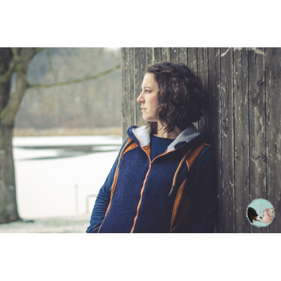 Der von der Kinder- und Männerweste bekannte Schnitt wurde für die Frauen optimal angepasst. Deshalb gibt es versteckte Brustabnäher in den Seitenpassen und eine besonders elegante Taschenanpassung.