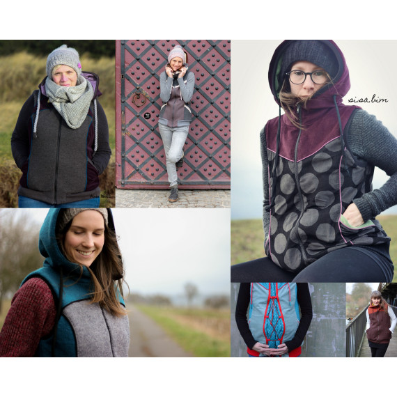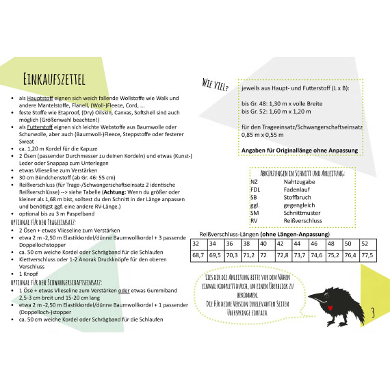 Als besonderes Extra enthält der Schnitt eine Schwangerenerweiterung und einen raffinierten Trageeinsatz! Beides ist selbstverständlich auch für jede andere vergleichbare Oberbekleidung nutzbar und enthält daher zusätzlich Universallängen.
