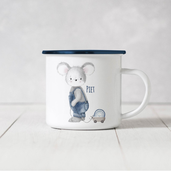 Toller Emaille Becher mit der Maus Piet nach dem Design von "Stickherz" :)