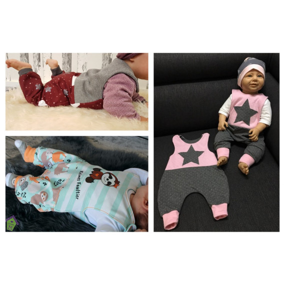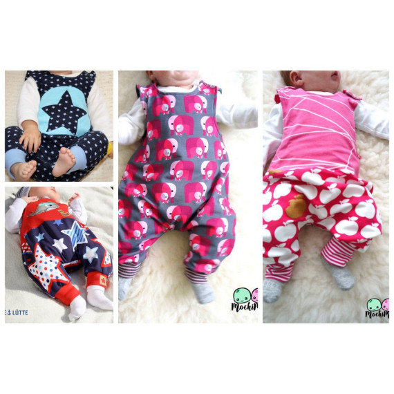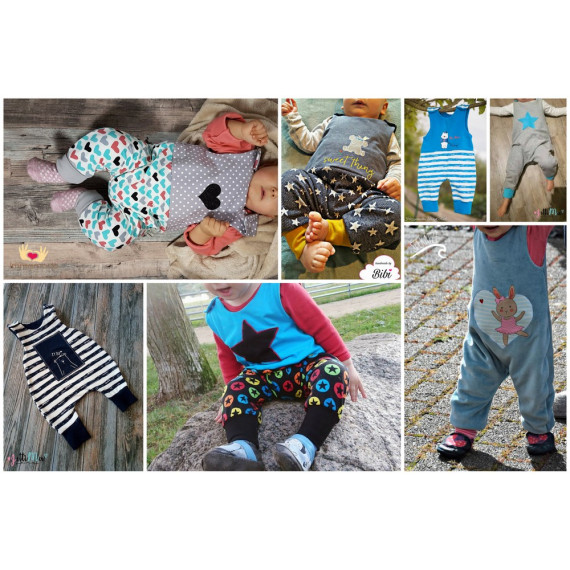 Schnell genäht, mit möglicher Passe als Unterteilung und Applikation, aber auch 2-lagig nähbar ist der Strampler Rock-A-Baby. Gr. 50 – 92 deckt der Schnitt ab und ist somit nutzbar ca. für die ersten beiden Lebensjahre des kleinen neuen Erdenbürgers. Die Passform ist locker lässig an den Seiten, sodass auch Stoffwindelkinder problemlos hineinpassen. Genäht wird er idealerweise aus Jersey oder Interlock-Stoffen.