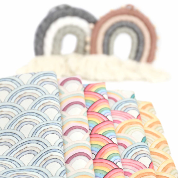 Wunderschöner fein gewebter Canvas mit Regenbögen in Hellblau-Tönen!