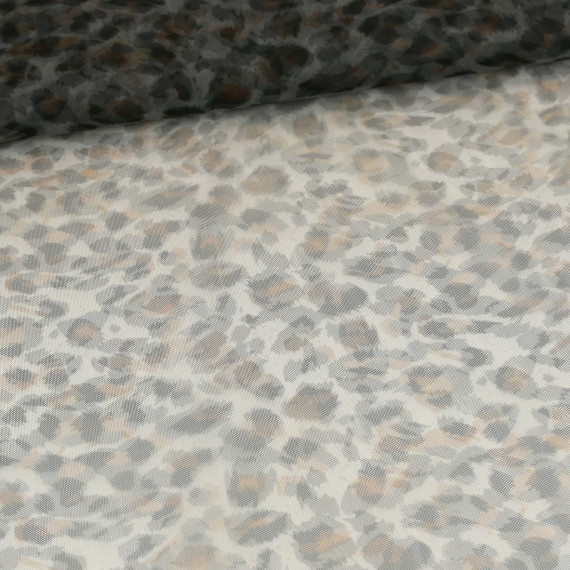 Feiner Tüllstoff - Weich - Leomuster - Grau