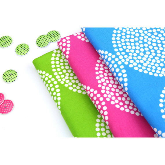 Wunderbarer fester Baumwollstoff von Kokka mit coolen gepunkteten Kreisen auf einem pinkfarbenen Hintergrund!