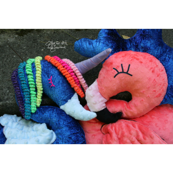 Die Anleitung ist ausführlich und auch Nähanfängern gelingt es ein individuelles Kuschelkissen zu nähen. Das e-Book enthält nicht nur die Anleitung für die normale Variante sondern zusätzlich viele Extras mit denen dein Flamingo oder Schwan zum König oder zur Königin wird. Oder vielleicht doch die Einhorn-Variante in Glitzerbunt?