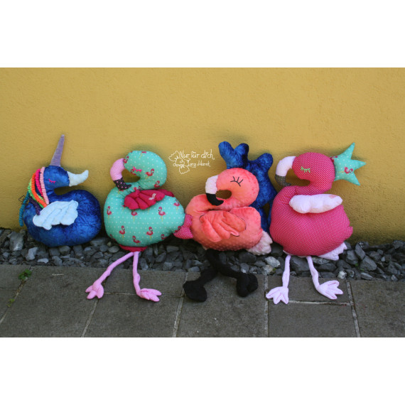 Mit diesem e-Book erhältst du eine Anleitung für ein tolles Kuschelkissen in Form eines Flamingos oder Schwanes in 3 unterschiedlichen Grössen und vielen Extras.