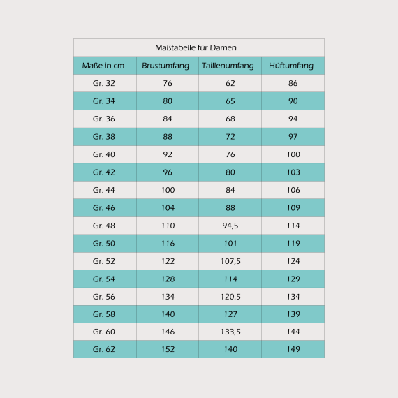 | Größen: | 32,34,36,38,40,42,44,46,48,50,52,54,56,58,60,62 |