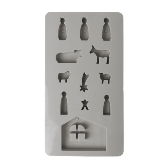 Gießform - Silikon - Mini Krippe - 12 Einzelmotive - Für Beton & Gießharz - Winter - Rayher