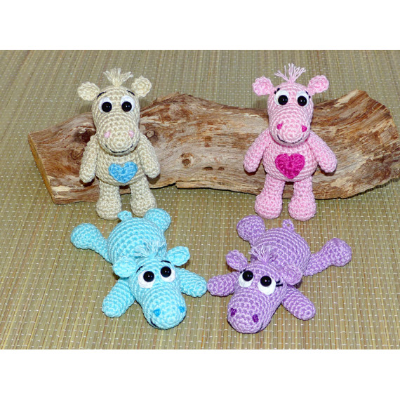 Nachdem ich bereits ein sehr großes Nilpferd in meinem Shop habe, wollte ich nun Mini Nilpferde häkeln :D Und voila hier sind sie. Sie sind...
