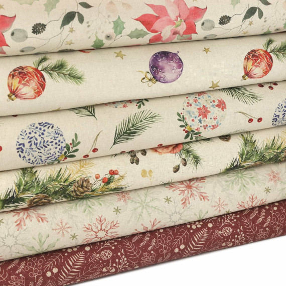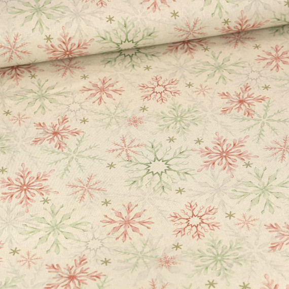 Half Panama Premium - Baumwolle - Leinenoptik - Weihnachtssterne - Creme Meliert
