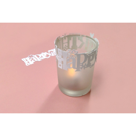 Dieses Geburtstags Band mit dem dekorativen Text kann sowohl mit Papieren und mit Folien verarbeitet werden.