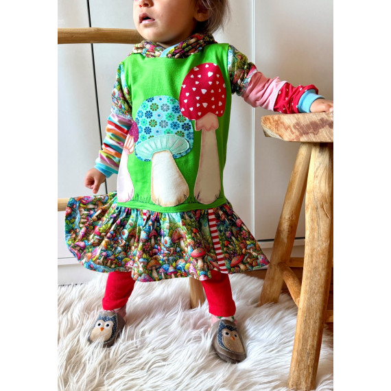 - Pilze auf Kinderkleidung, Hoodies, Beuteln oder Kissen – naturgetreu oder bunt.
