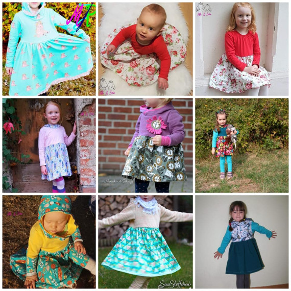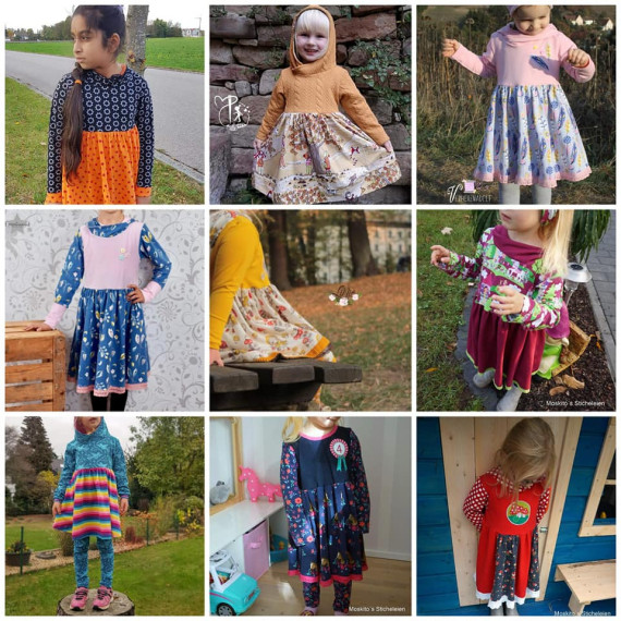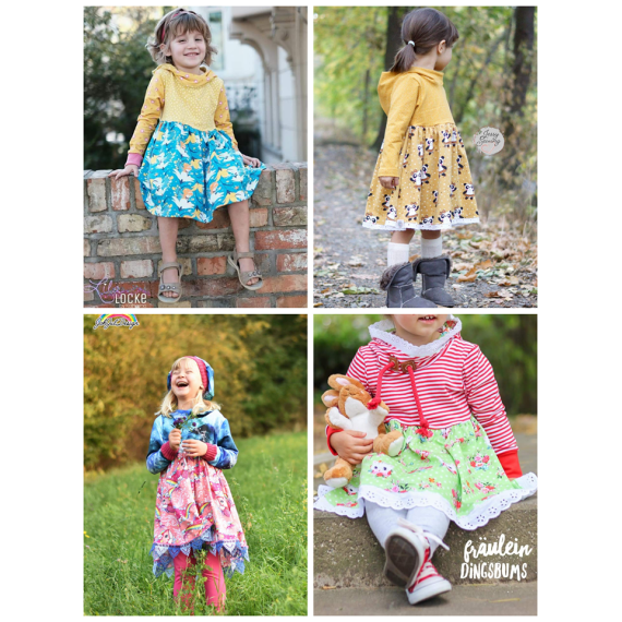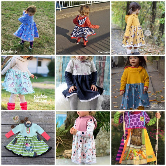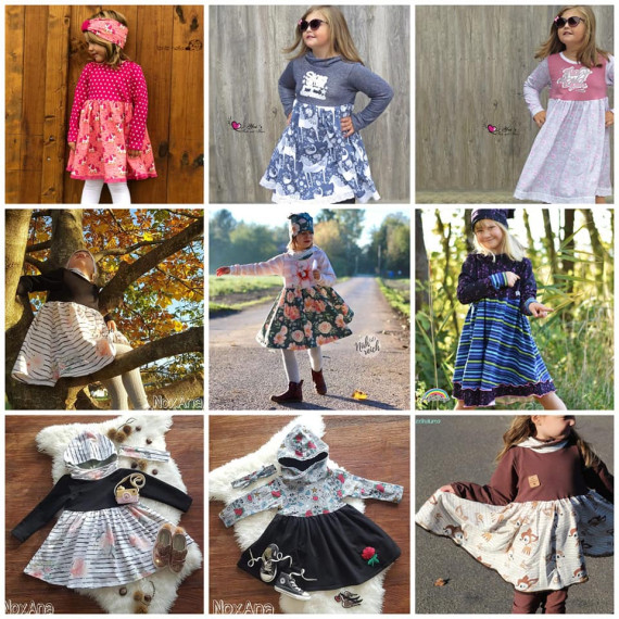 Ebook enthält die bebilderte Nähanleitung für das weit schwingende Hoodiekleid Schatzi , mit...