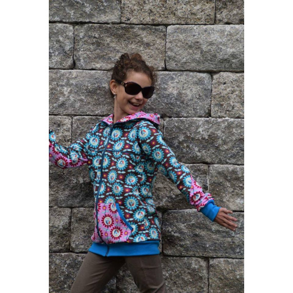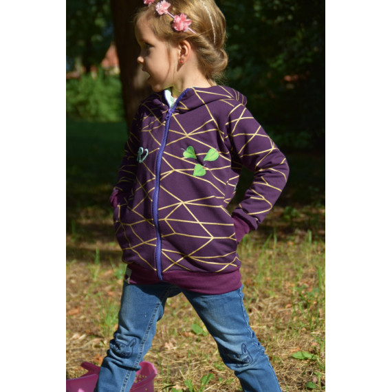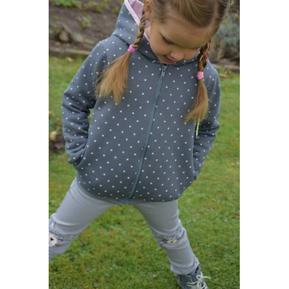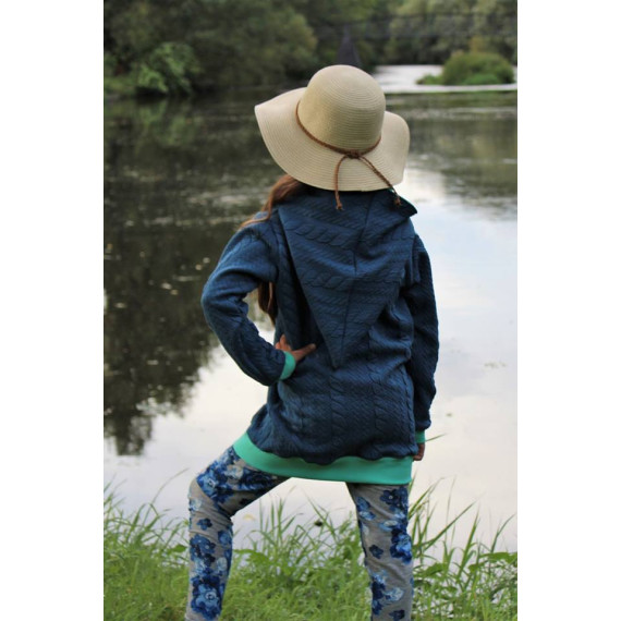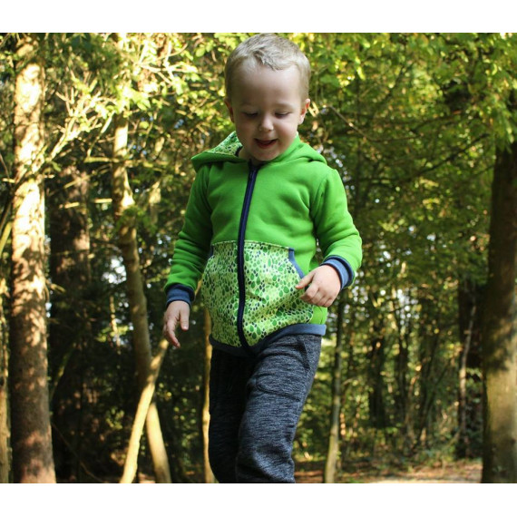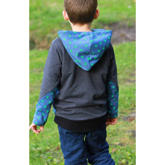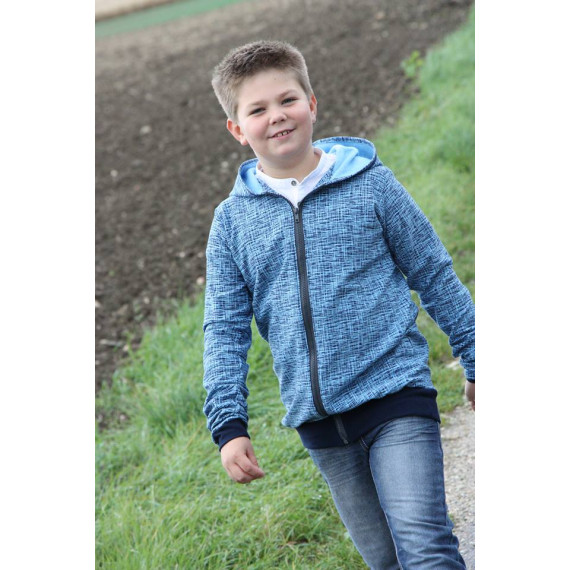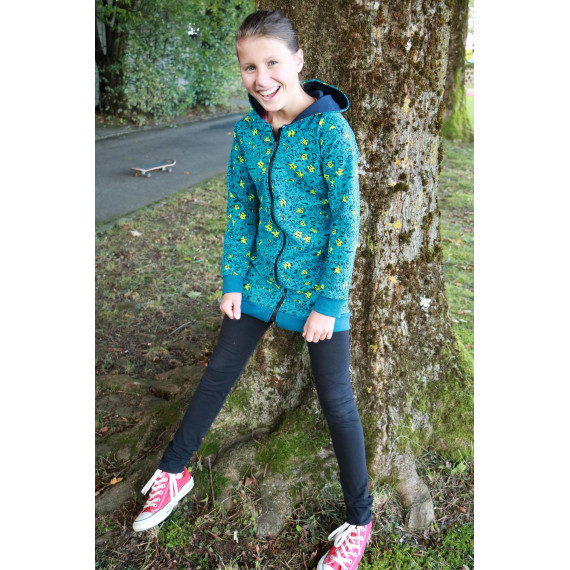 Die J-Sweat kann als Jacke oder Weste, in Slim oder Leger, mit 4 Kapuzen varianten, 3 Kragen varianten, 3 Taschen varianten, mit Stoffteilungen und vielem mehr genäht werden.