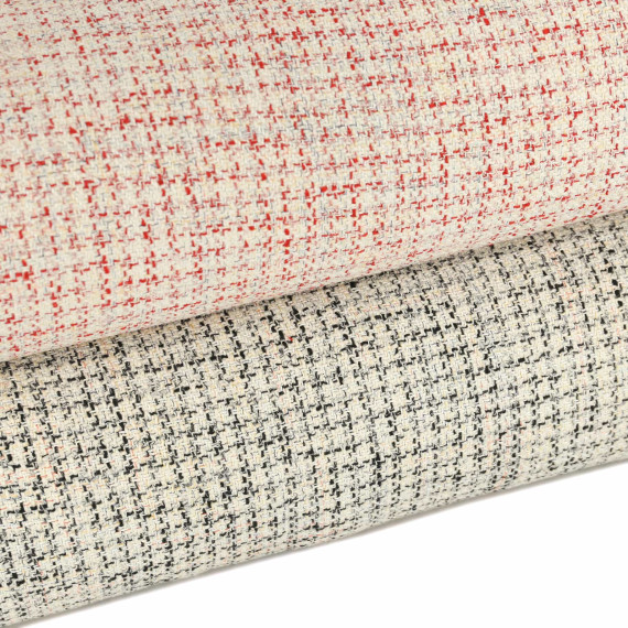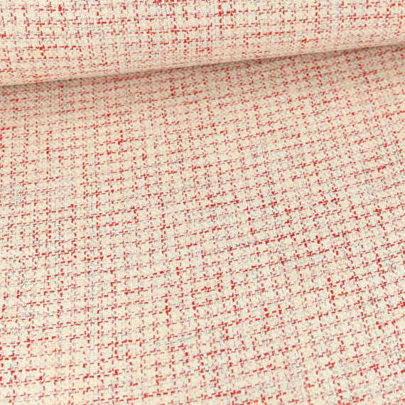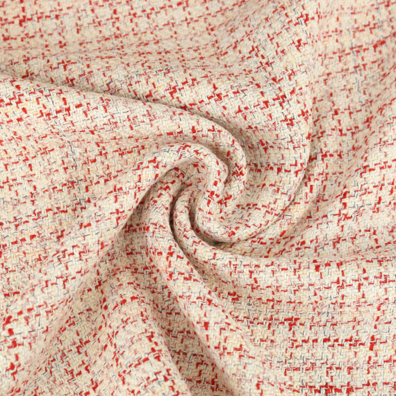 Jacquard Boucle - Glitzer - Meliert - Warmweiß/Rot