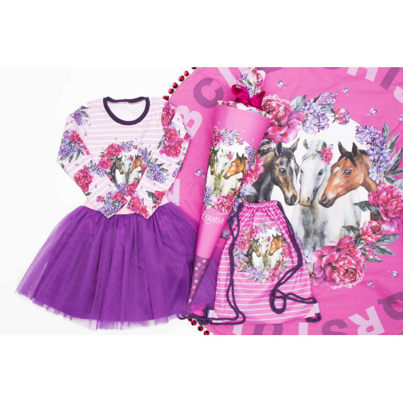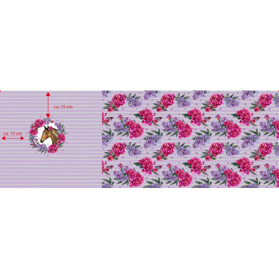 Wunderschönes Jersey Paneel in Bio Qualität von abby and me. Dieses Stöffchen ist perfekt für echt Pferde Fans :) Hier mit einem fliederfarbenen...