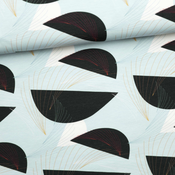 Wunderschöner Jersey mit herrlichen Mustern von Seed & Story. Wir sind total verliebt in diese neuen Stöffchen. Hier mit einem hellblauen Hintergrund.
