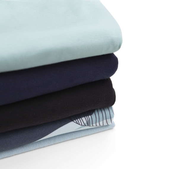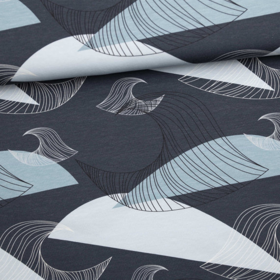 Wunderschöner Jersey mit herlichen Mustern von Seed & Story. Wir sind total verliebt in diese neuen Stöffchen. Hier mit einem blaugrauen Hintergrund.