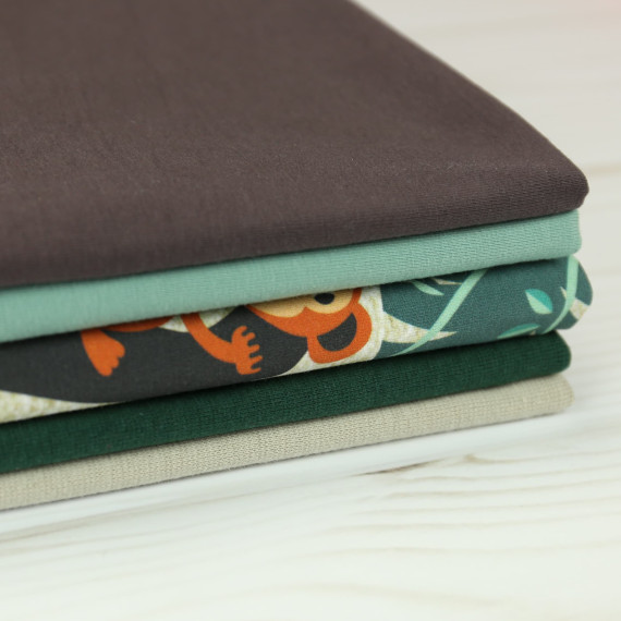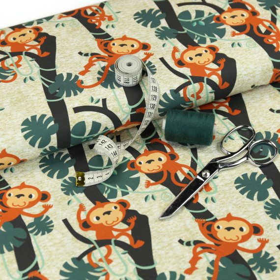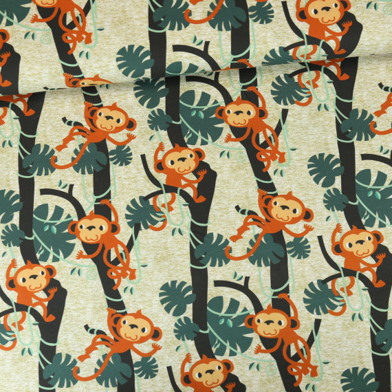 Jersey, abby and me, graugrün meliert, Monkeys, affe, affen, Nancy Kers, Kerskunst, jungle, monstera, dschungel