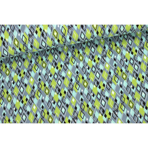 Die Rauten sind Hellgrün und Hellblautönen auf einem grauen Hintergrund.