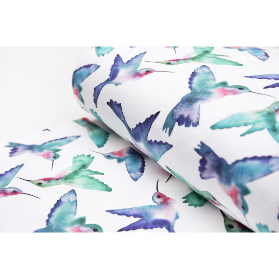 Wunderschöner Jersey mit Kolibris im Watercolor Look.