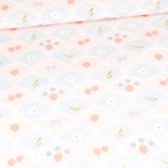 Wunderschöner Jersey mit einem frühlingshaften Bogenmuster mit Früchten und Blüten! :)