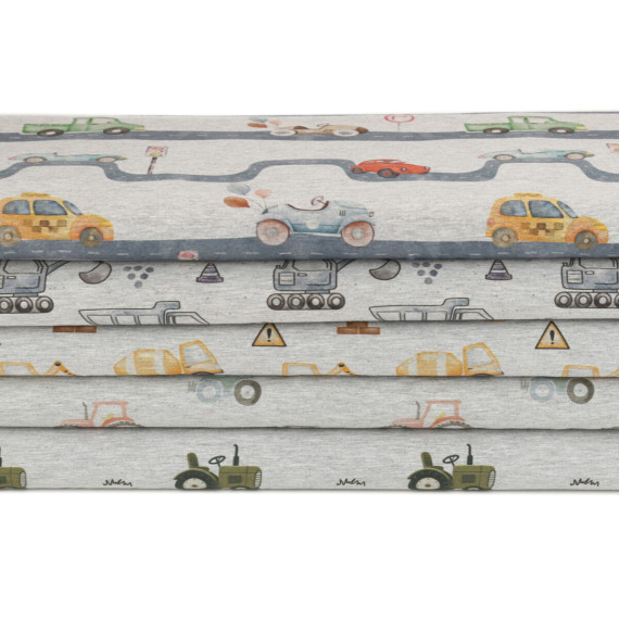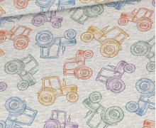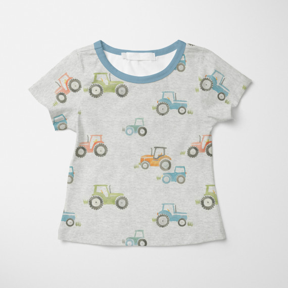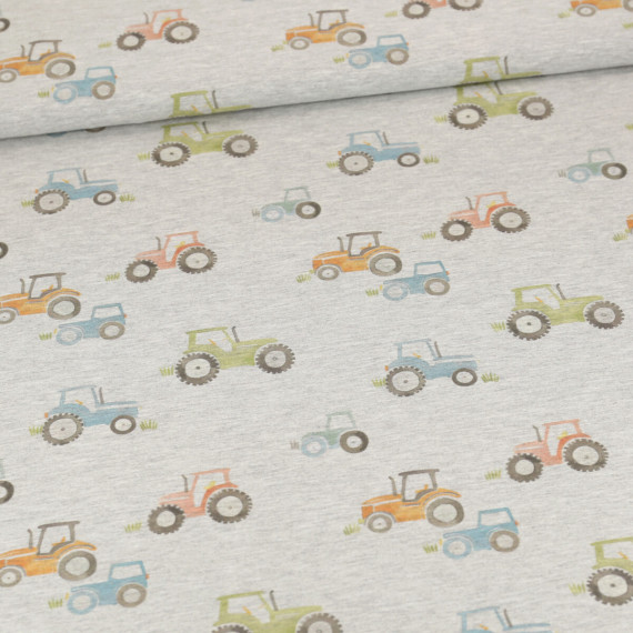 Toller Jersey mit bunten, unterschiedlich großen Traktoren im Aquarell-Stil. :)