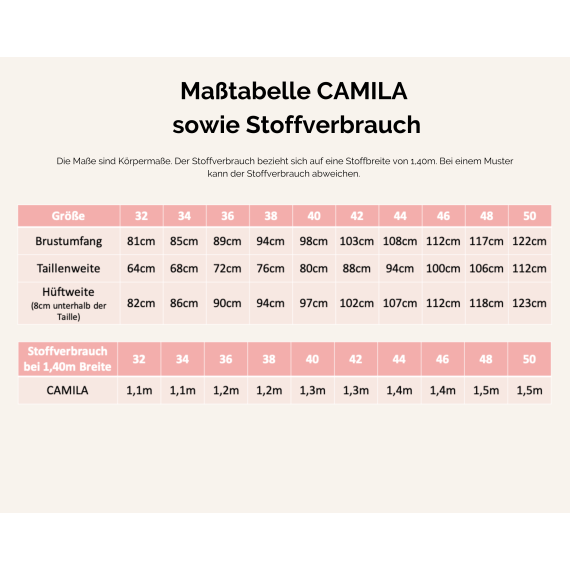 Im Vorderteil hat CAMILA zwei waagrechte Brustabnäher. Die Brustabnäher verhindern das unschöne Faltenwerfen unterhalb deiner Arme. In den kleinen Größen sind die Abnäher sehr schmal und können auch eingehalten werden. Natürlich kannst du sie aber auch ganz normal nähen. Ab Größe 40 würde ich dir empfehlen die Abnäher immer normal zu nähen.